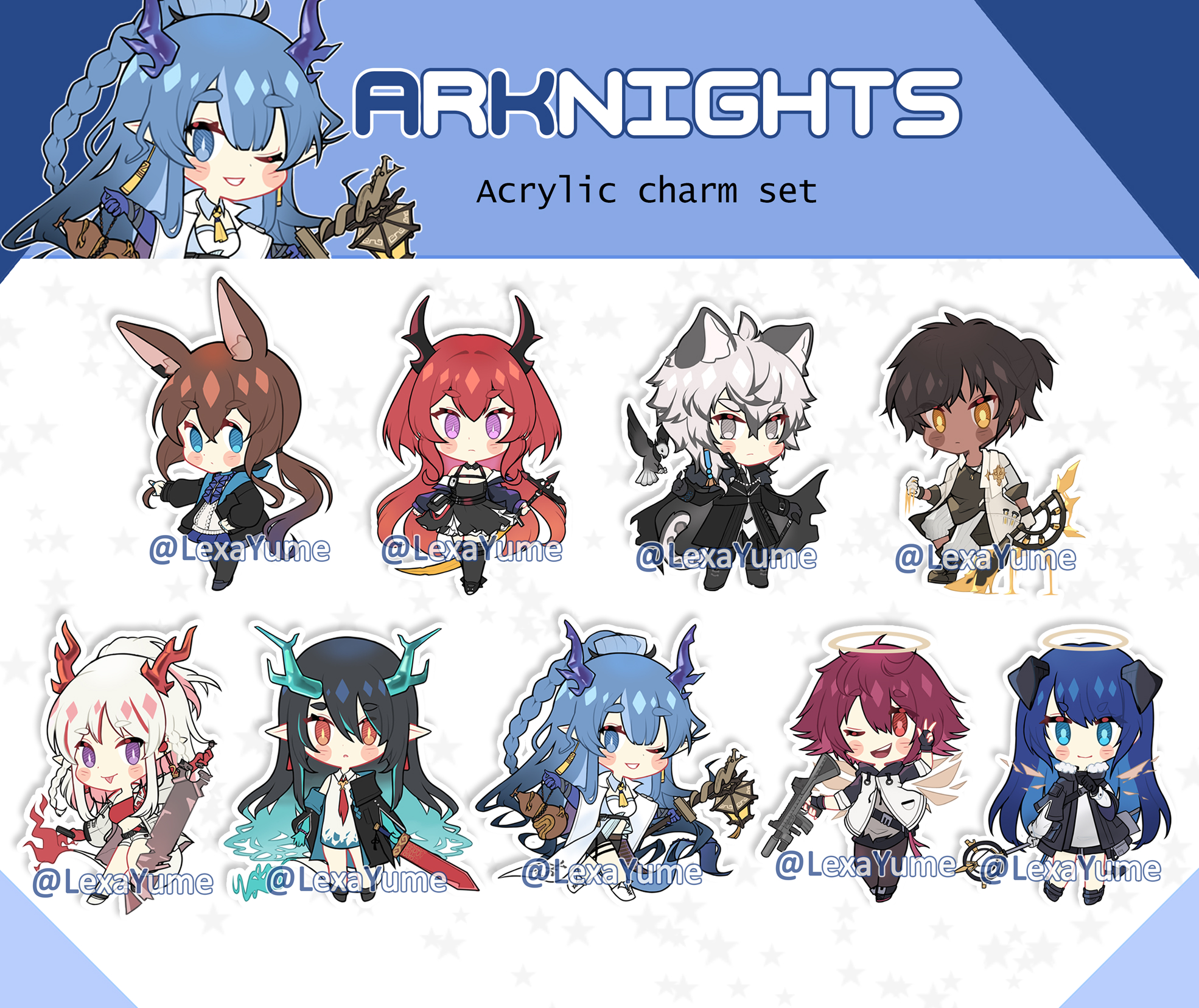 Charms based on the gacha game Arknights